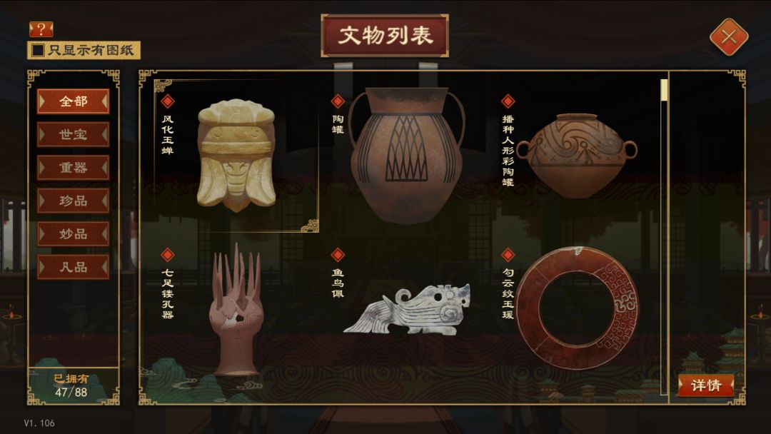 ①玩家可以从琳琅宝阁处,通过完成成就任务获得龟甲,使用龟甲或者珑币购买文物或者是文物的图纸。
