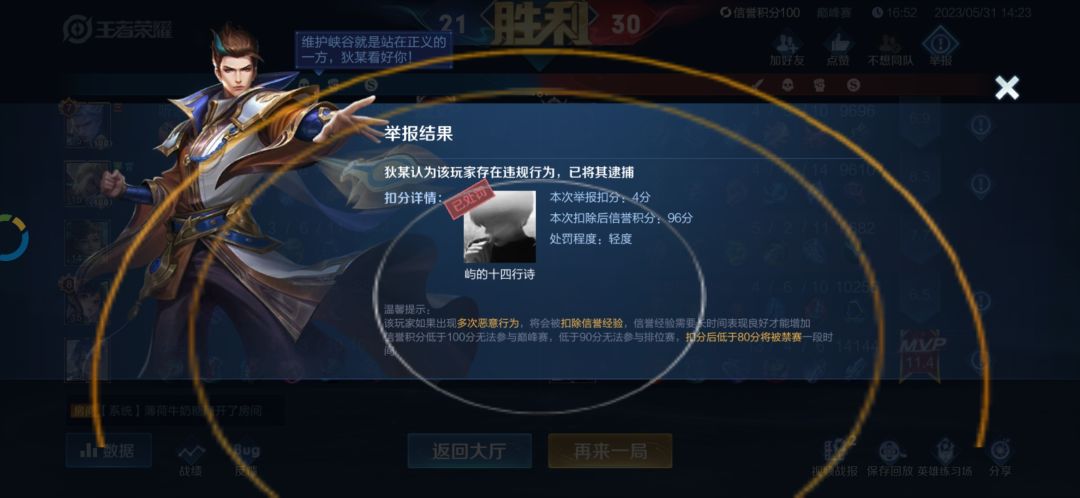 初尝巅峰赛就是巅峰赛的3连胜,总共的6连胜。。厉害就厉害在,每一局都举报到人了哟!!