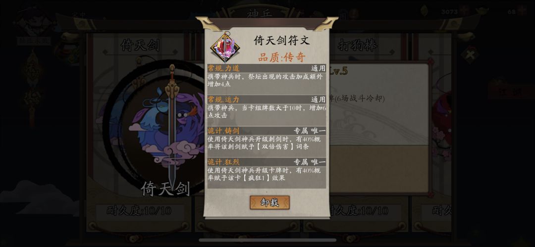 这两天看到论坛很多老玩家都说符文历练打不过,可能是词条属性问题,但是很有可能说你阵容搭配出了问题,符文历练因为有大量的debuff很多玩家牌还没成型就被打回去了。简单说下我的攻略,豪侠(叠加+反伤):豪侠基本上最稳的了,如果不是词条太难基本上叠加都是平推,如果词条太难可以带个反甲,效果奇佳。有吸血拿吸血,没吸血拿降龙千里。刺客(弃牌+废牌):和豪侠差不多,如果词条不难周黑鸭弃牌基本上平推,词条太难可以用金轮废牌流,比什么毒刺好用,不用要求key牌,不用英雄技能打伤害,其他细节大同小异,优先吸血。游侠(冰冻):游侠目前遇到的词条都不太友好,用的冰冻流,而且这周还没有摸到暗唯我,不过问题不大,前期复制左使乱舞牌,很好打。气宗(气爆阵+气毒阵):气爆阵论坛有很多攻略在这就不说了,但是这周词条加一层东海一家守门,第一次被打回去了,丢人啊。没关系转手上气毒阵。核心琴圣+星宿搭配龙王。其实和气爆阵差不多,优点就是成型要快点,就简单的说到这里,大家有什么不懂的可以留言咨询。在这里祝大家开出极品神兵。