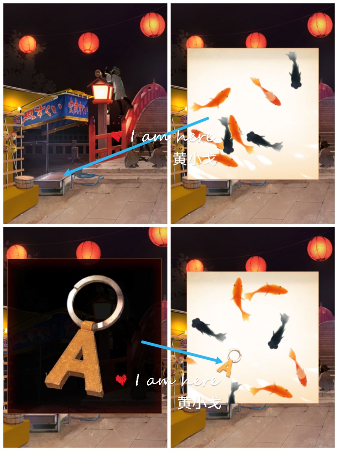 1.(庙会-桥)点击金鱼摊,赶走金鱼,获得【钥匙链】