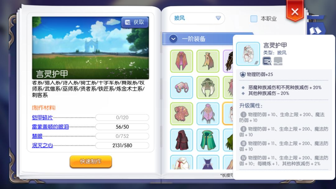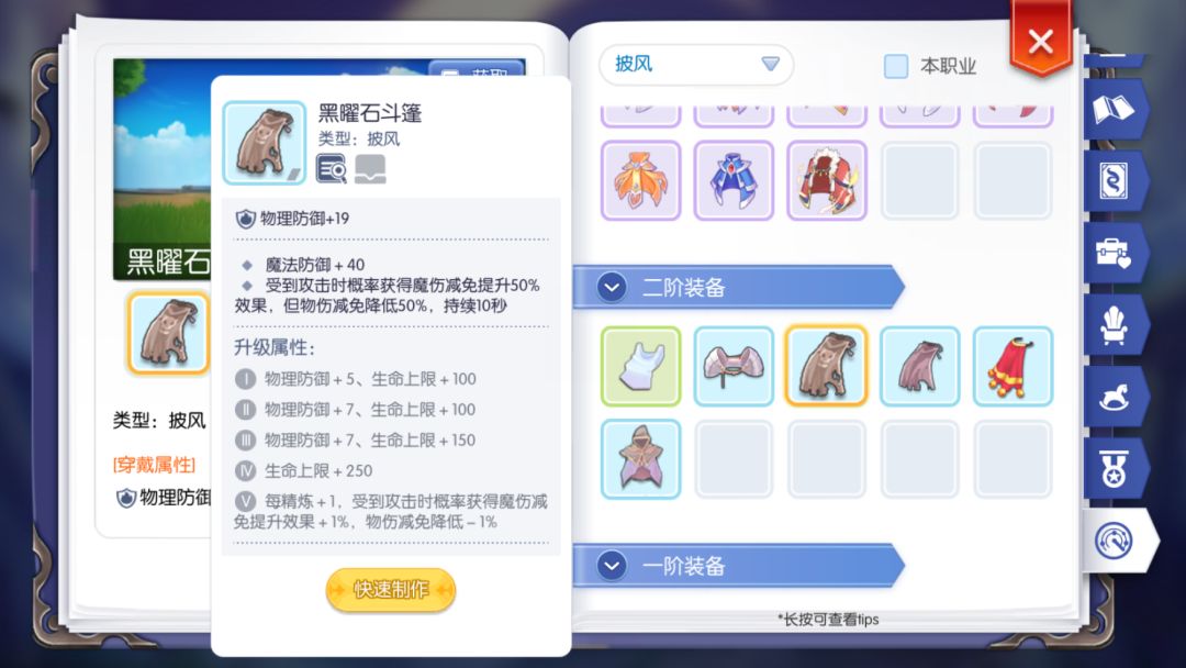 在这里解释一下披风,披风那玩意大家可能没见过,这装备在半肉法反的路子里要么不升级要么不精炼,白板就够用啦,削人减给法系打伤害从而更好反伤的同时加了一点恶魔抗防达达,是很适合这个路子的一件装备