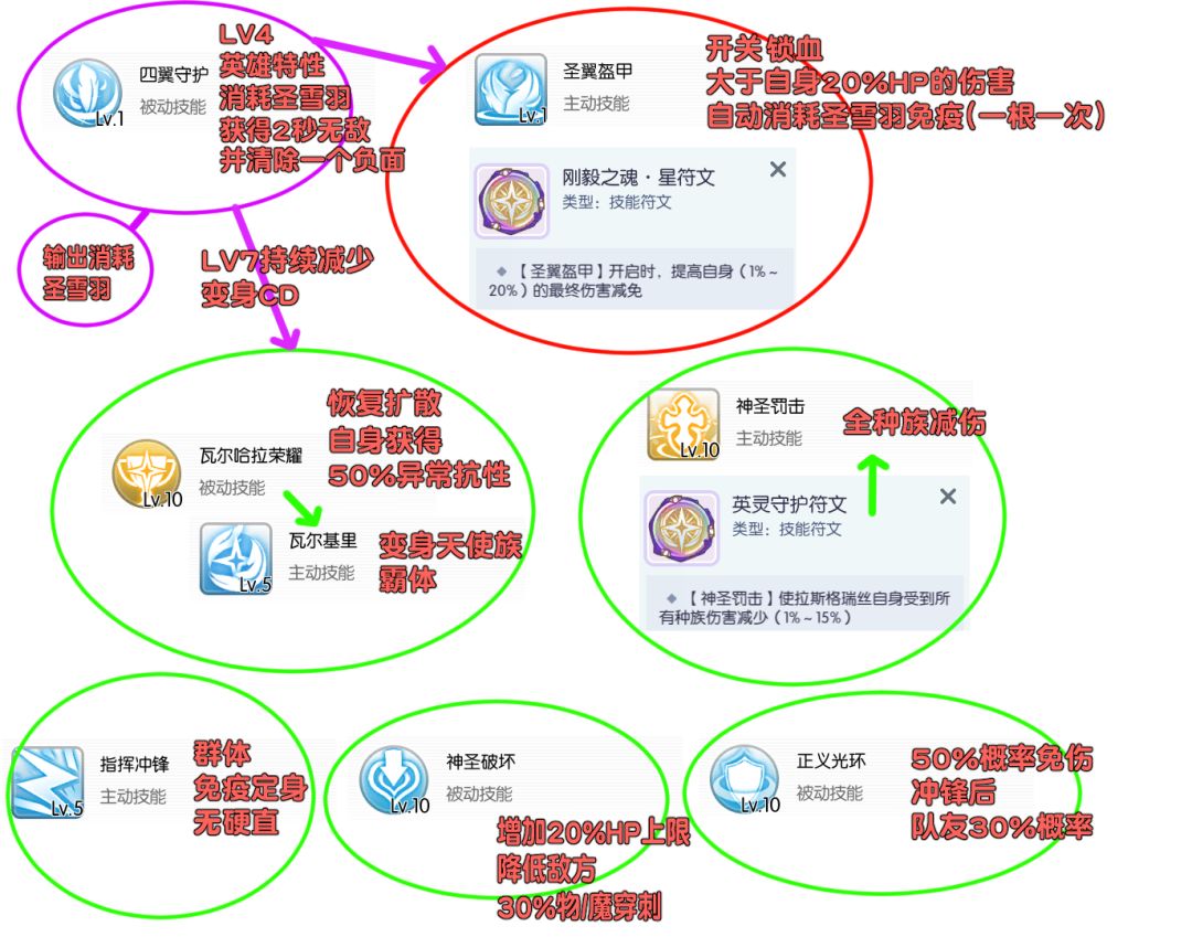另外在【圣翼盔甲】触发消耗【圣雪羽】时,会触发LV4英雄特性的免疫物理/魔法伤害2秒。