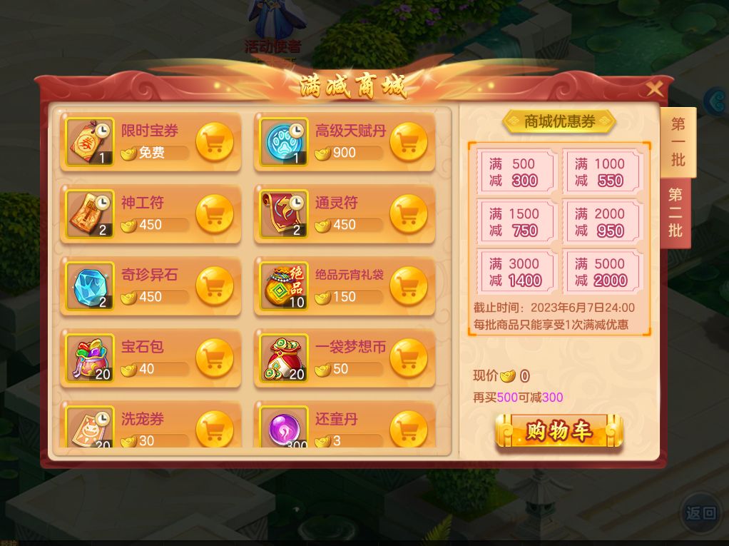 5)满减商城:6月1日维护后-6月7日24:00,可前往满减商城购买商品(荣耀盛夏服务器开启时间为6月11日);