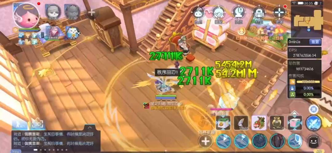 ③然后进行伤害构成分析,虽然木桩和boss的差异会存在比较大,但是由于拉斯格瑞斯的输出技能都是物理攻击+魔法攻击)*技能倍率的物理伤害,所以我这里直接用木桩代替boss进行分析,由于其中一个输出为27s冷却,所以我这里攻击木桩1分钟,攻击两轮,减少数据的误差。