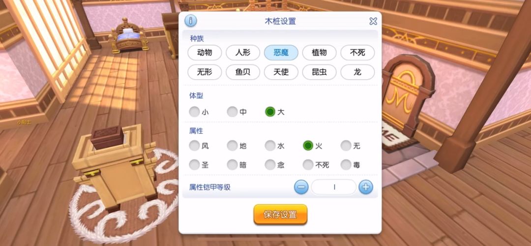 视频攻击木桩属性为60强度+暗(火)+大+恶魔: