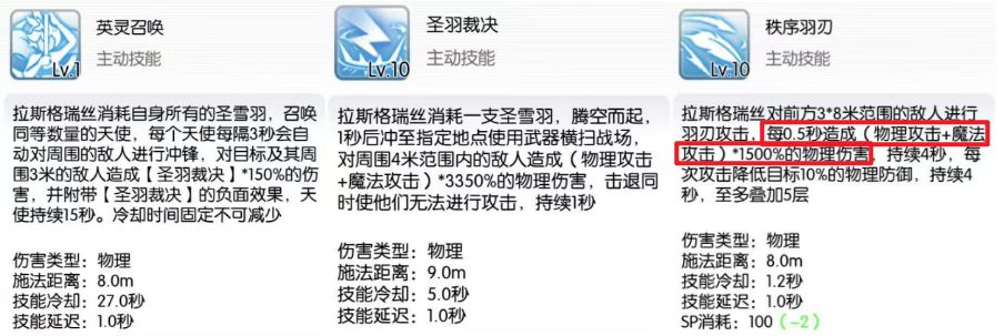 从之前攻略里的技能描述来看,拉斯格瑞斯的技能均为(物理攻击+魔法攻击)*技能倍率的物理伤害。