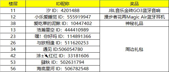 下面是本次活动的获奖名单,增加了一些惊喜小礼品,感谢宝们的支持~
