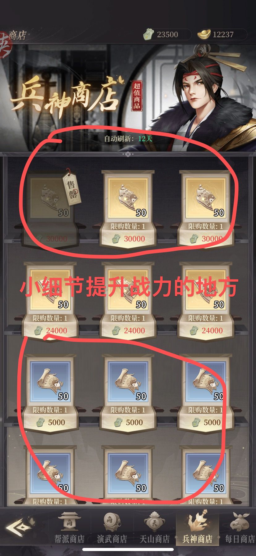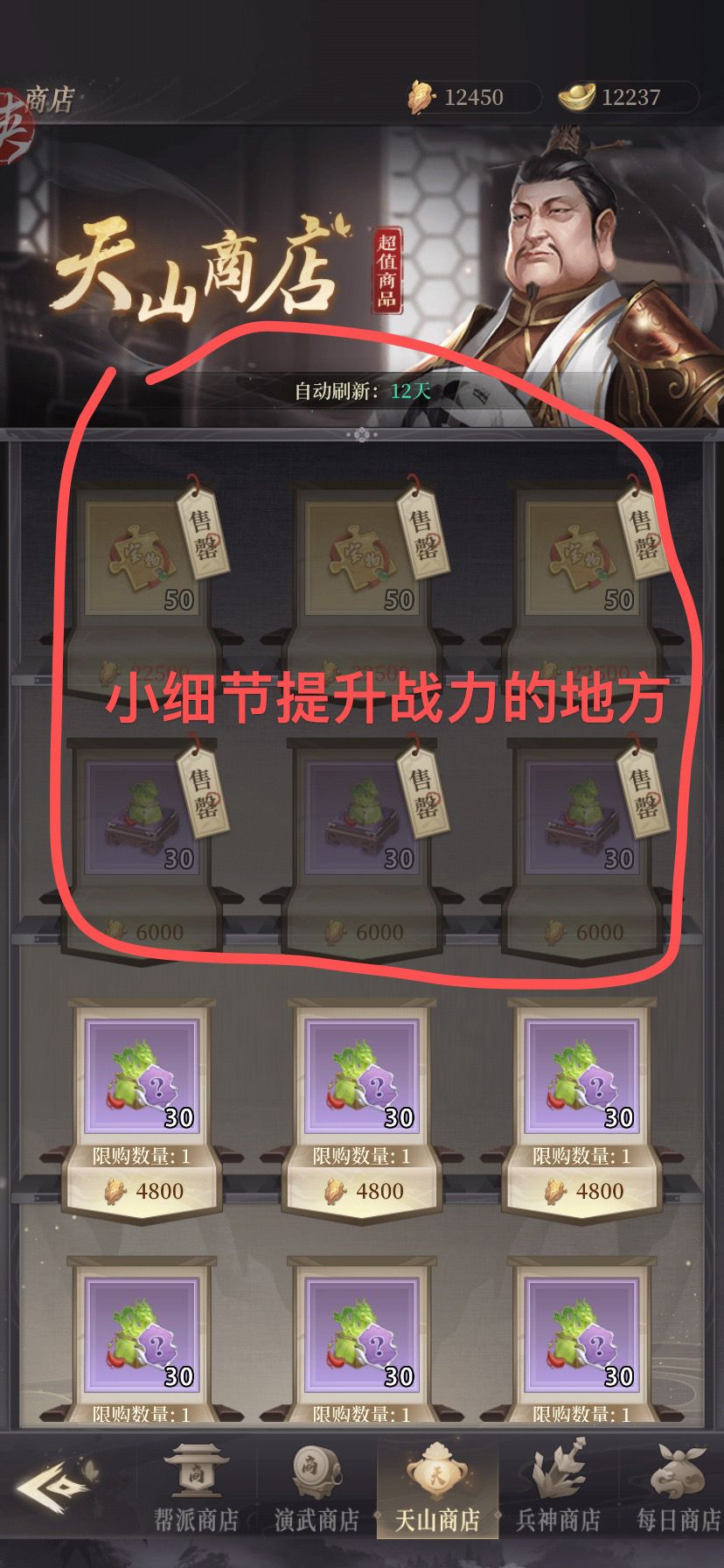 天山商店建议上面6个买(后面会说到宝物怎么提升)
