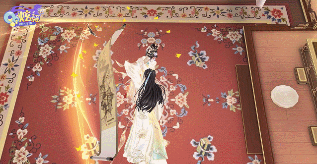 他正在书案前作画,一把匕首飞驰而来,他掀起画卷将其挡住…