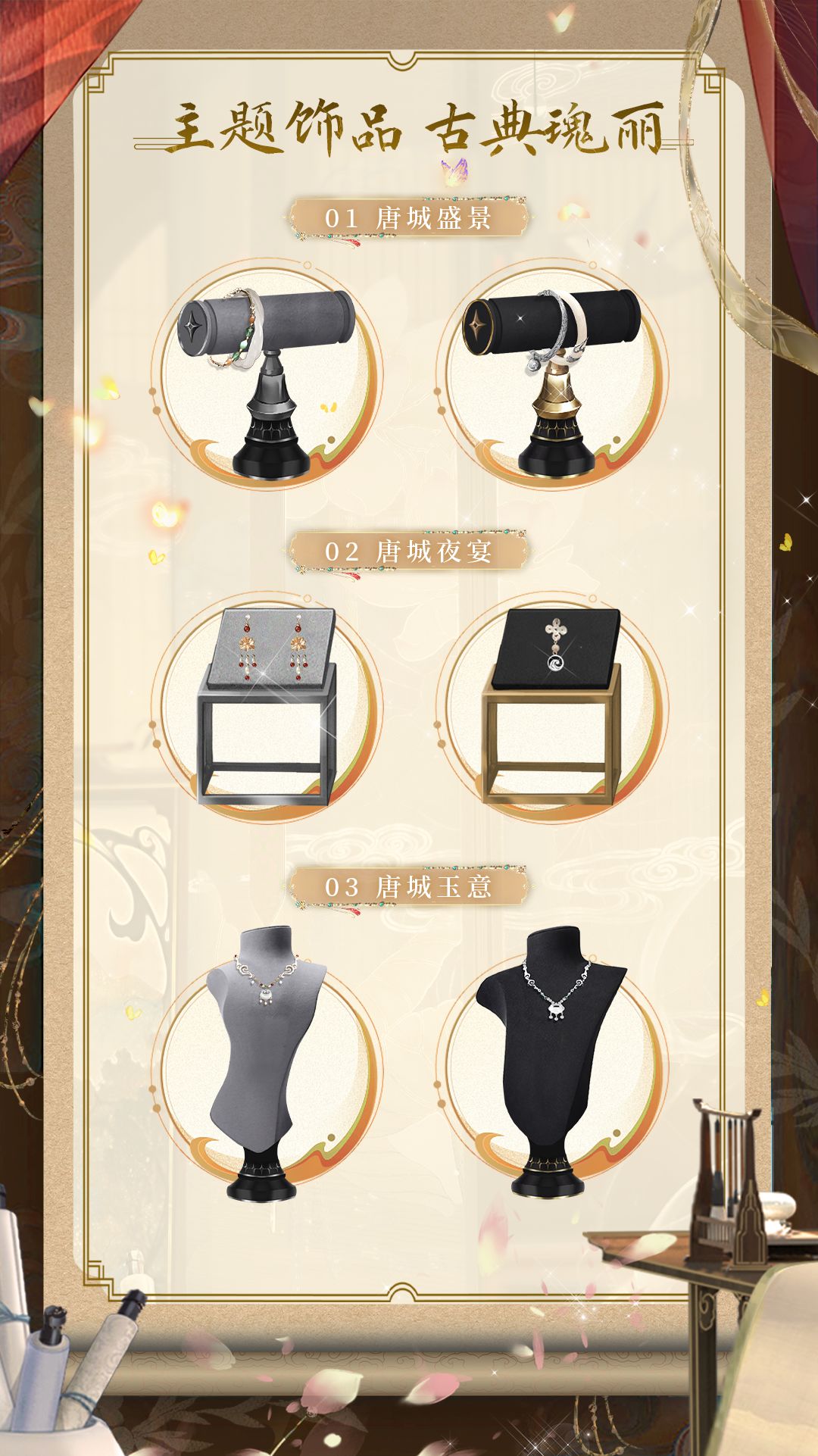 超凡套装-名动唐城/轻奢新时装-朱印宵旦/浮云-唐宫卧榻/主题手持-镯子&项链/全新名片上架【藏宝之地-银霜之门】