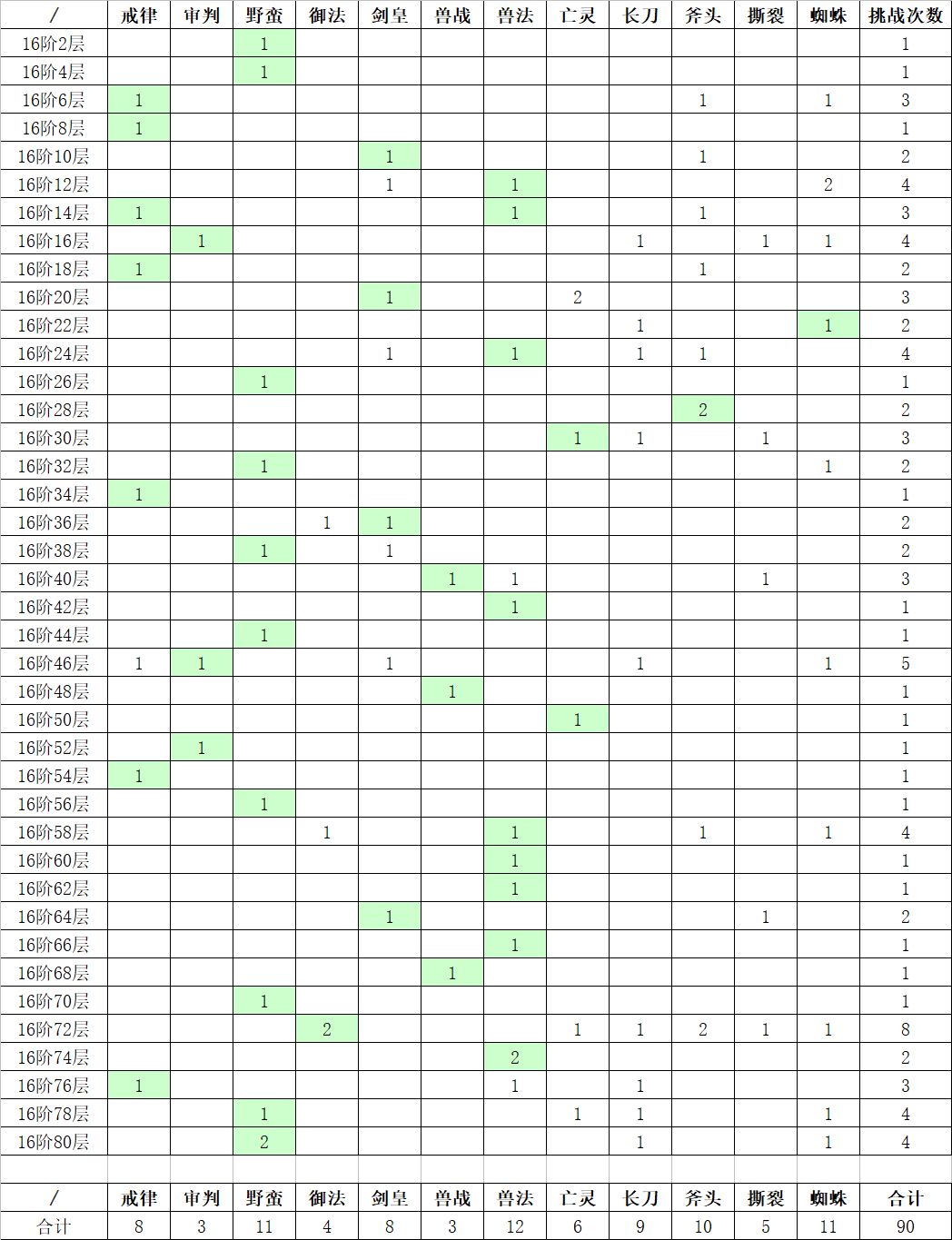 此数据为了帮助其他玩家,更直观的看到每一关首领出现的次数,好选择是用单种族,还是双种族,甚至三种族的搭配。