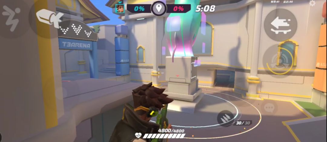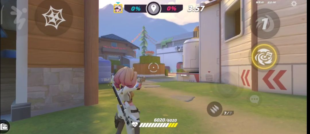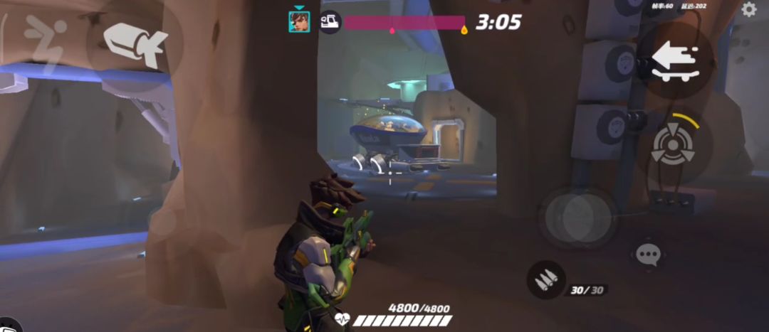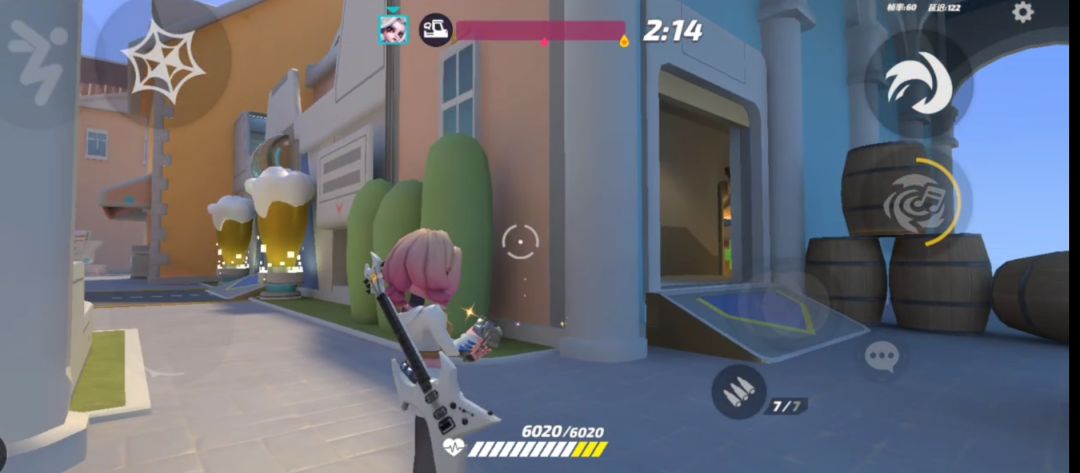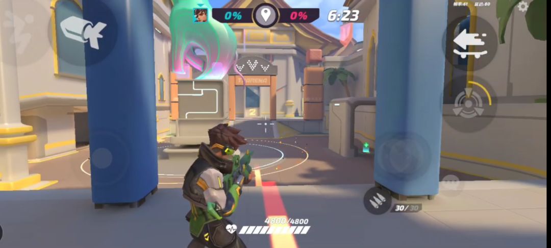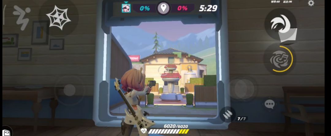 花翎的劣势:在该图中视野较窄,敌方报团推进的情况下,花翎的准心容易受到影响(吸附)。