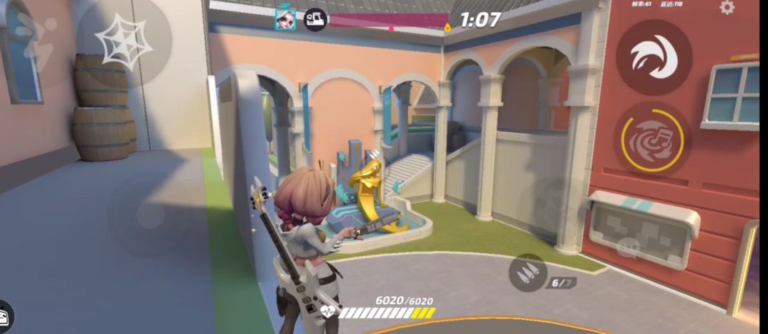 花翎的劣势:中场墙体较多,花翎需要不断调整角度来攻击,容易暴露身位给对面输出位和刺客位。