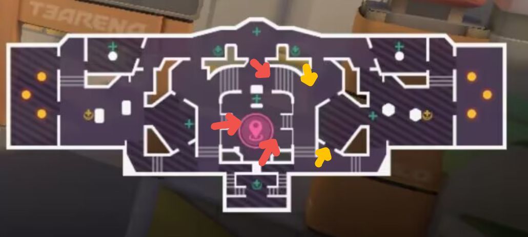 (黄色箭头为进攻压制点位)