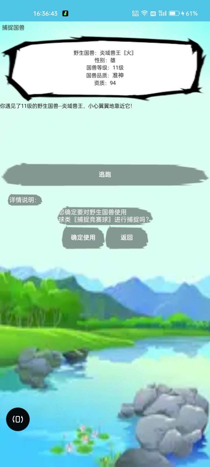 然后在捕捉竞赛地图里面进行捕捉各种低级、高级国兽,