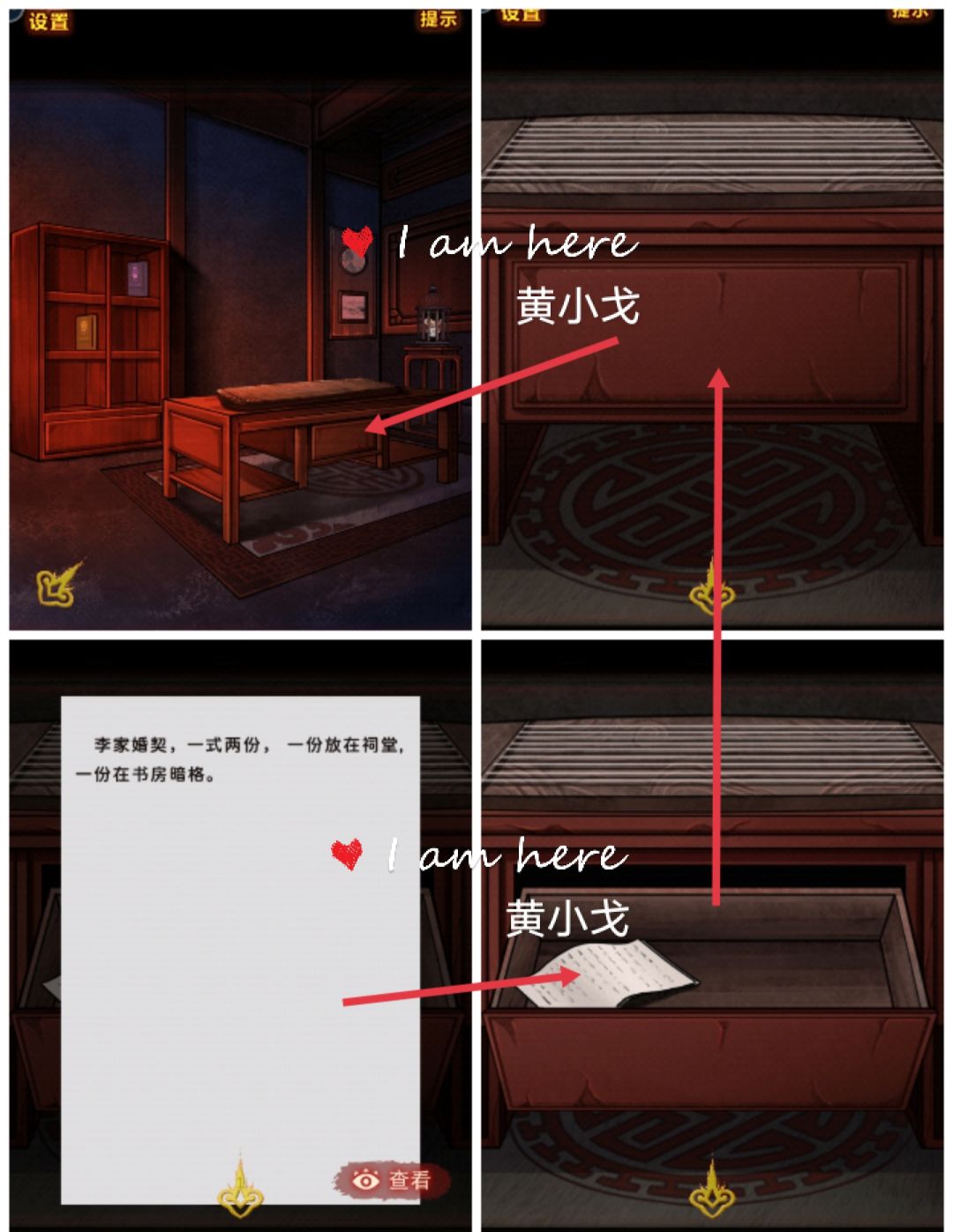 3.(世善堂)点击桌子的抽屉,把两个【一半玉佩】放入凹槽