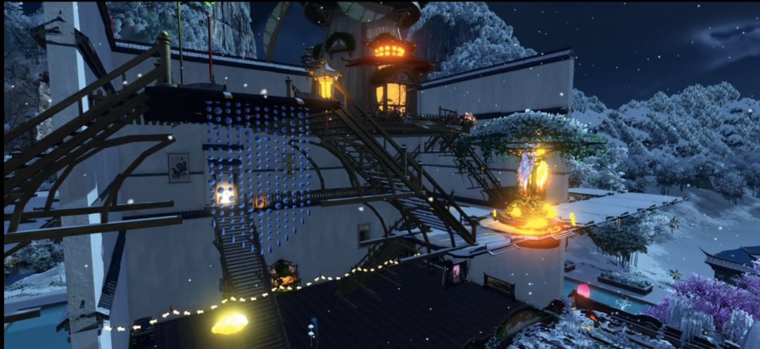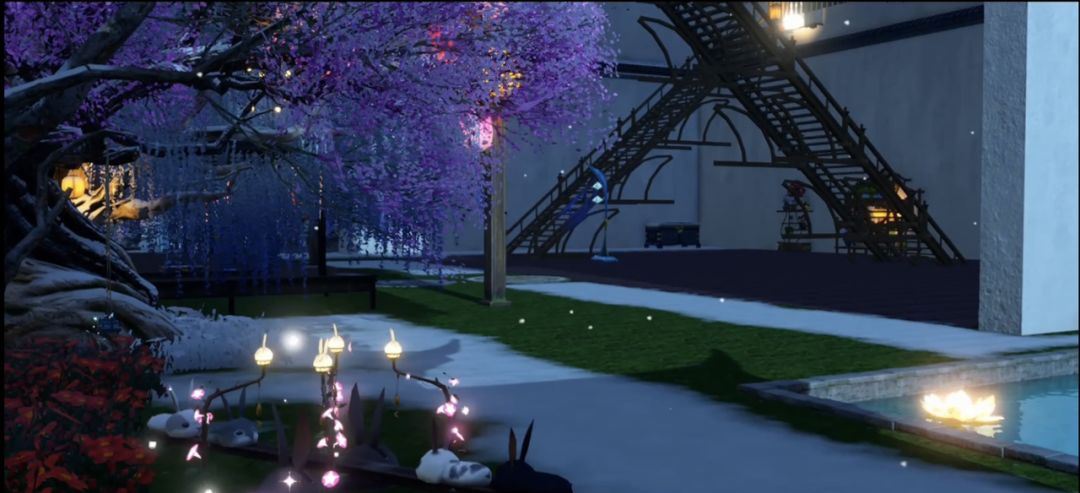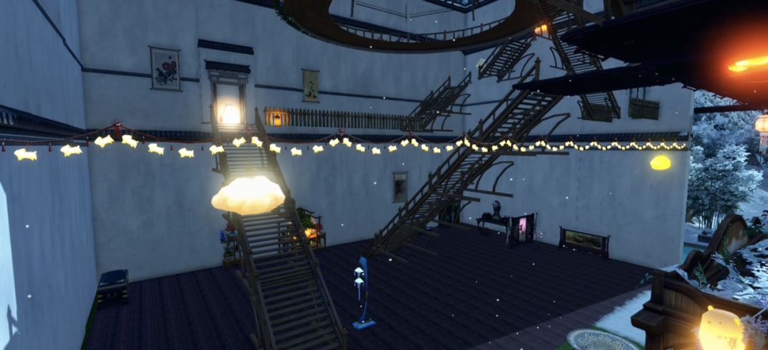 逆水寒独栋免费庄园:在旋转楼梯的基础上打造的一套庭院,每当夜晚降临,便是灯火阑珊处~