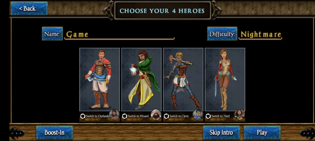 开局选人,固定四个人团队,第一个是敏感战士,以,第二个主力法师,第三个近战牧师,第四个匕首刺客会弓