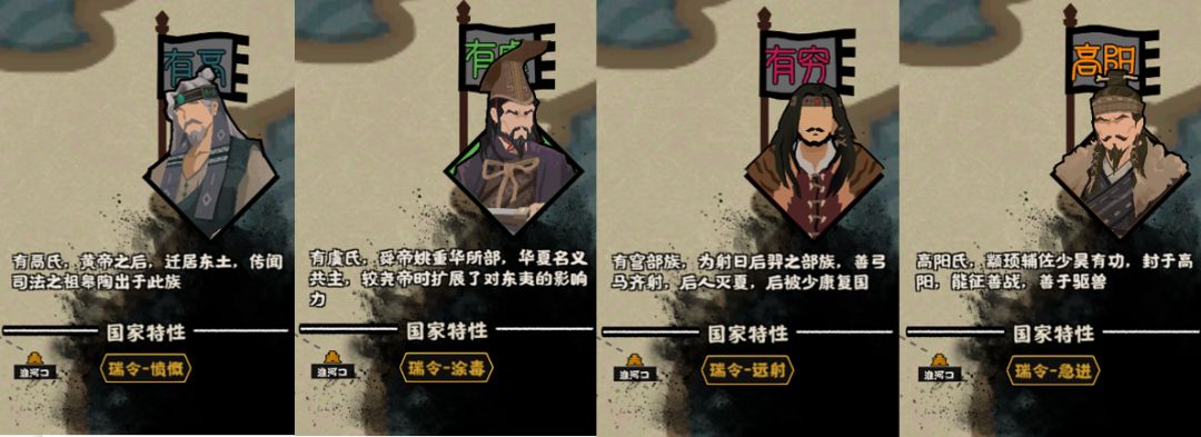 有夏、有穷、防风、三苗、陶唐、高阳等各大氏族部落分布在华夏大地,本次剧本是大禹专属剧本,王上们需选择大禹进行剧本体验,其他势力为剧情势力不可解锁~
