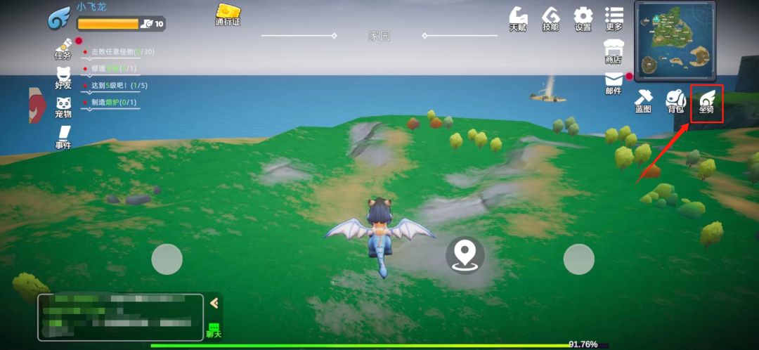 在飞行地图内点击右上角「坐骑」