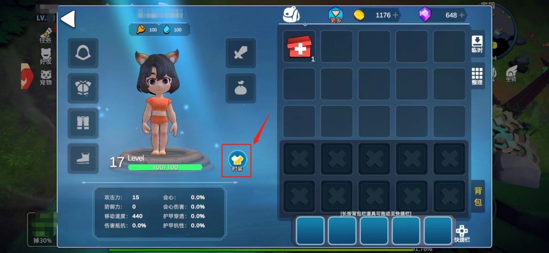 在背包页面点击图示「时装」