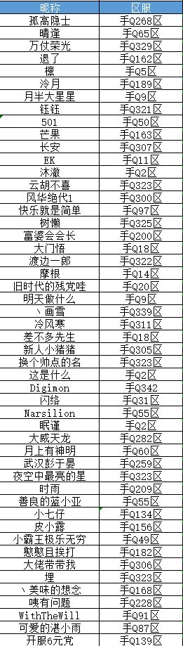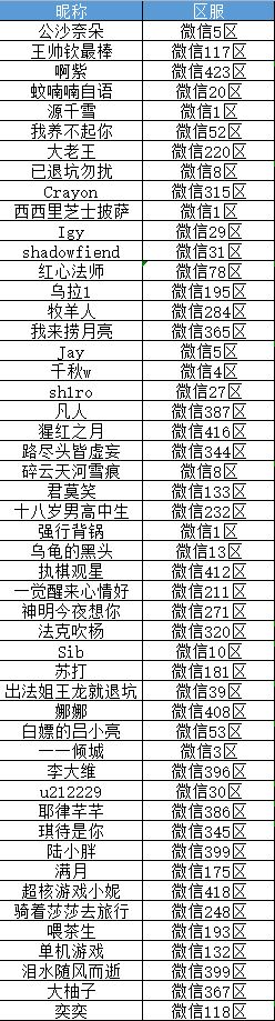 以上即为本次参与测试的玩家名单,请各位队长按时进入测试服参与活动,届时我们也将建立官方玩家群,以便与您及时沟通,具体请以通知为准!
