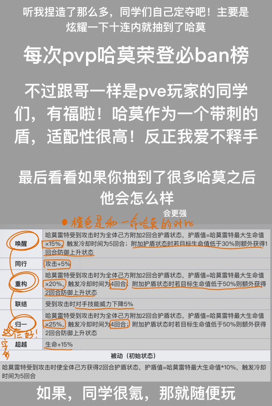 我来力!之前唤醒测试有出过哈莫配队攻略,这次俺搬来微博做的小攻略喽!!!