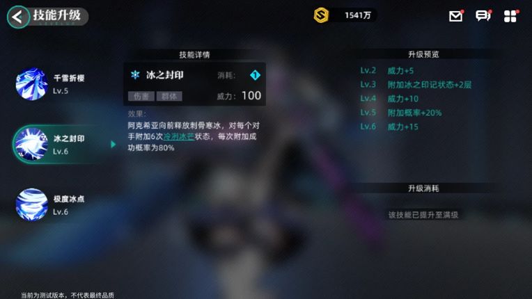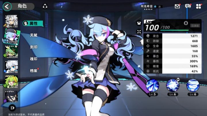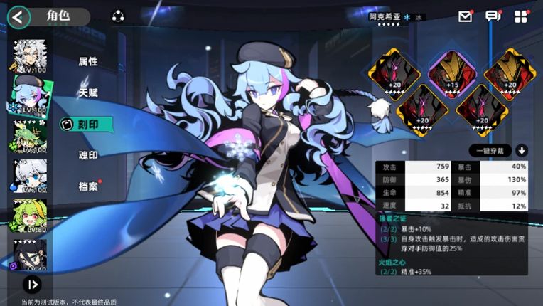 搬运#赛尔计划同行测试##攻略#阿克希亚作为测试里冰系唯一的角色,我觉得她是可以作为输出位的,虽然PVP环境对她0不友好,但还是可以有一席之地,我的阿克希亚是走暴击爆伤流,虽然暴击率可能不够,但还是能打出高额伤害,阿克希亚主要先2技能叠加印记,叠满5层后再3技能打伤害,搭配哈默始祖或者迪符特走高速流。阿克希亚1技能单体伤害概率加速,冻伤加印记。2技能群体伤害有概率最多附加6层印记,升到3级印记加2层。3技能群体伤害引爆印记,每层印记敌方角色受到的伤害提高15%,对5层印记的敌方角色有3%概率秒杀,PVP才有效,技能升级顺序是先2技能3技能1技能,魂印可以造成冻伤效果,所以阿克希亚得1命比较好,天赋的技能升级我选择2技能,刻印套装选的强者之证,还有2个位置可以选精准或者速度套,属性选暴击爆伤、速度、精准。