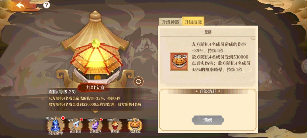 5个法宝技能显示出来了 用什么自己决定 我感觉 2号3号适合练级 4号5号适合打架 1号干嘛都适合 有什么见解欢迎留言