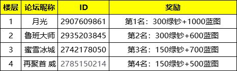 第1名:300绿钞+1000蓝图