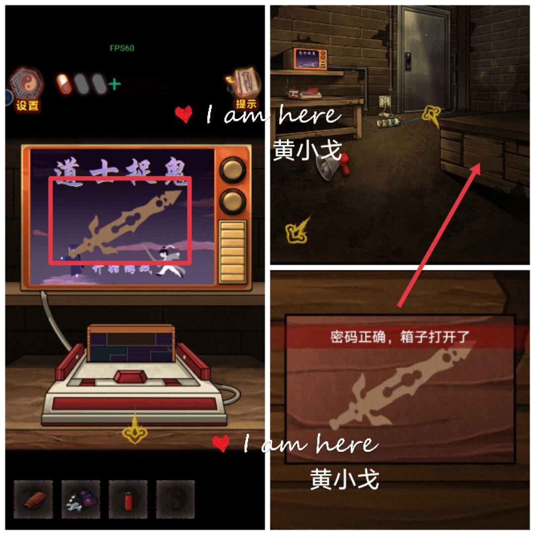 1.(房子)点击木板下面的暗格,根据屏幕上的宝剑,调整箱子上的宝剑