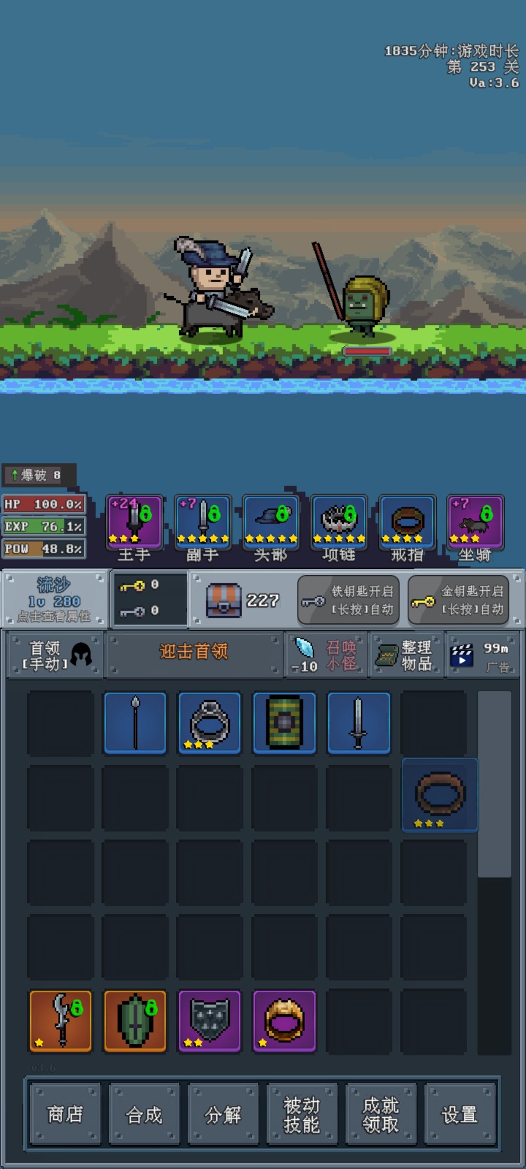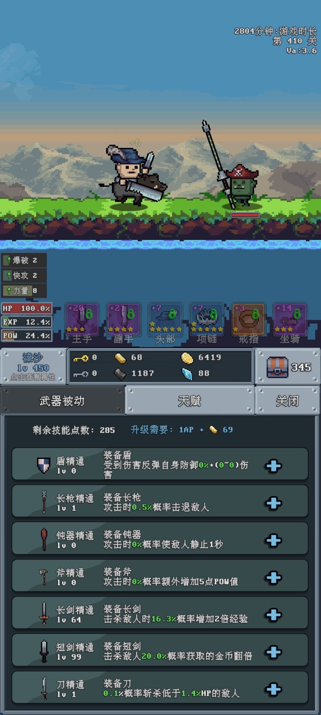 新手进入游戏,钻石用途只有一个,点天赋稳定伤害和力大砖飞,武器别乱升级,只有破釜沉舟词条的可以升级强化,没来这个词条之前都点天赋可以安全打过60层,歇一歇挂挂机,蓝色装备留着一直升星到有紫色 橙色以上破釜沉舟词条再换。蓝色强化到7就可以了。最好有刀刀暴击词条。武器选择短剑开局,短剑天赋先满,打钱嘎嘎快,满了之后再升长剑天赋,其他武器都太慢了,体会不到一秒五刀刀刀暴击的快感。