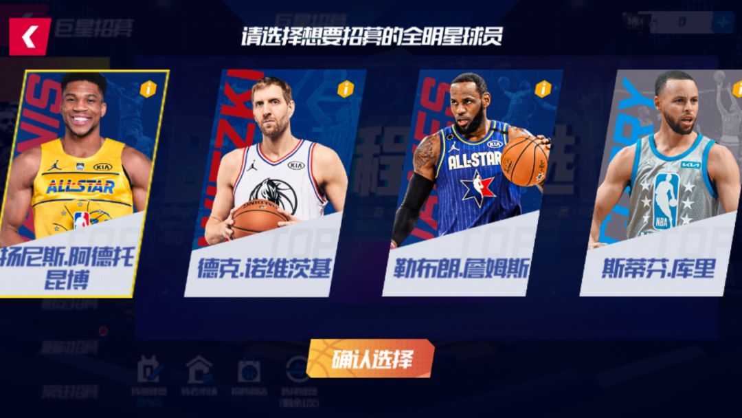 刚入篮大,错过了全明星?经理人可在已开放的全明星球员中(截止到全明星保罗)自选1个开启对应的精准招募卡池,并对全明星球员进行招募!