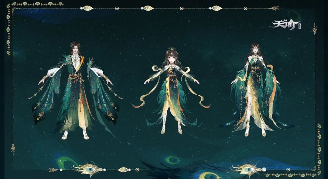 孔雀被誉为百鸟之王,传说中是凤凰之子。它象征着美好的爱情,与所爱之人白头偕老,也象征着前程似锦,事事吉祥如意。见到孔雀开屏之时,就是好事将近啦!碧羽翠翎之中,又藏着多少美好呢?小谕为冒险家们带来了“碧羽雀灵”,来听听这套时装背后的设计巧思吧!01设计思路在青绿的孔雀翎羽簇拥下,穿上这一袭典雅的衣装。见证你的爱情,见证你的荣光,见证你与美好岁月同在的记忆,而爱与美终将长存。在决定以孔雀作为主题来设计时装的时候,我们就想要充分展现出以高贵典雅的风格。孔雀的意象还代表着和谐美好的爱情,如花似锦的未来。希望“碧羽雀灵”能为你带来这一切!