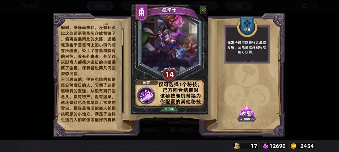 虚弱之雾——直接将敌方手牌和场上的单位等级全部变零。遇到对面想打你多联时,你刚好刷出这个技能能为对面带来惊喜,理由能为疯学士增加生存