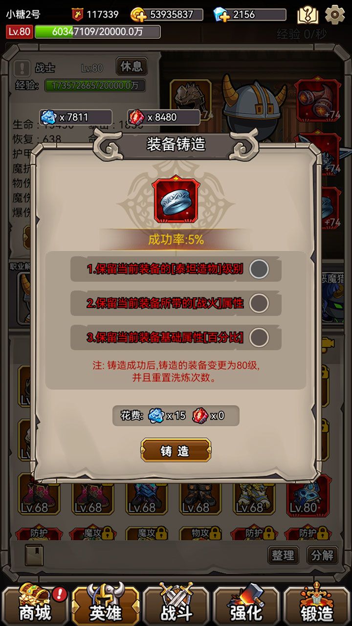 3.开启重铸功能,可以将低级红装升级到80级(那些舍不得分解又没啥用的装备这个时候就有用了,如果你已经分解,那只能拍大腿了~千万别骂小糖~)