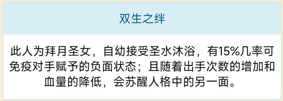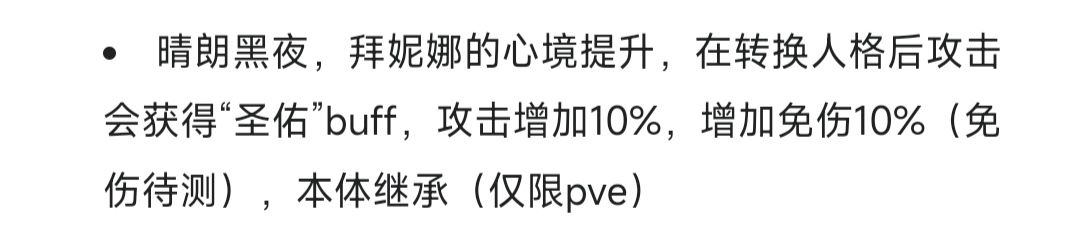 如果你有拜,有恰好这次更新可以洗出不错的毕业天赋,但是你碧游教受阻,周常难打,正在培养工具人,有不断踌躇该怎么培养,那你就抓紧时间和资源培养一个拜妮娜,给一套烈阳离火就行。