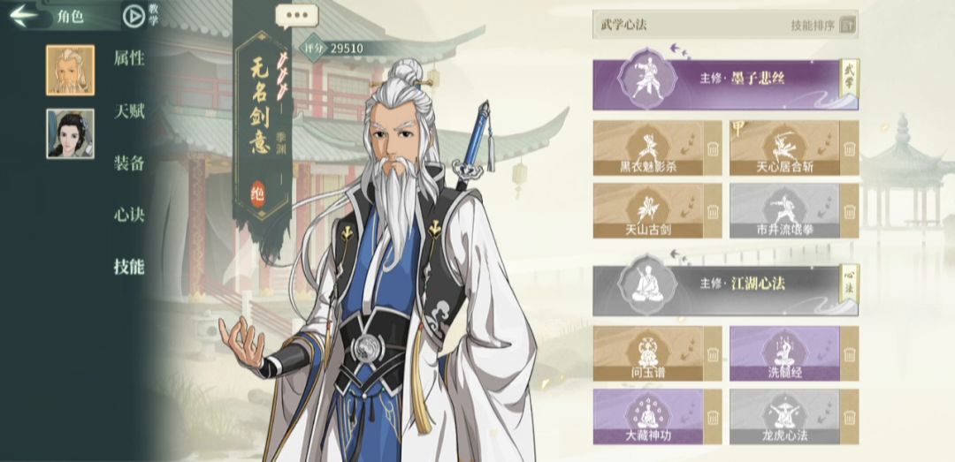 除了乱石滩剩下的图,主角墨子悲丝和甲糖丸两个人都能打了,就是夜战洛阳还需要再上这几个割草队友。这里要注意的是夜战洛阳小怪有大量反弹伤害,所以我微调了下换上了龙虎心法,配置里其他不变不另外附图了。