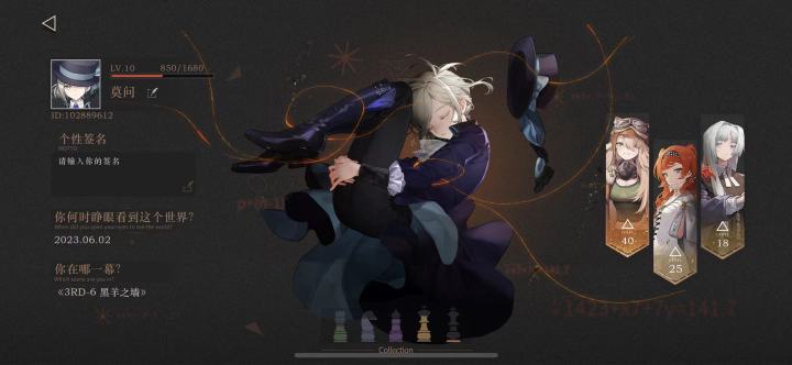 这里说过各有所好,我用的十四行诗,获取简单,系统直接拉到高星(就是塑造,抽到同人物,可以提升技能数值),培养还能返还一定资源。非常推荐。不过不用拉的太高。兑换里边可以换一个星锑,如果喜欢可以重点培养,不过我还有更加推荐的,星锑可以作为一个过渡。替换后十四行诗可以进入第四人或者直接丢。