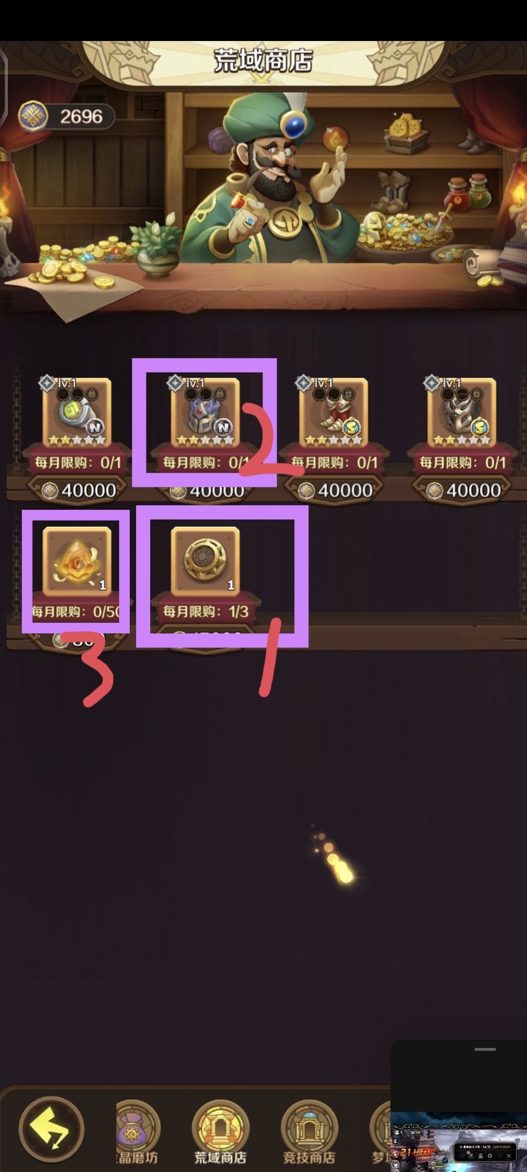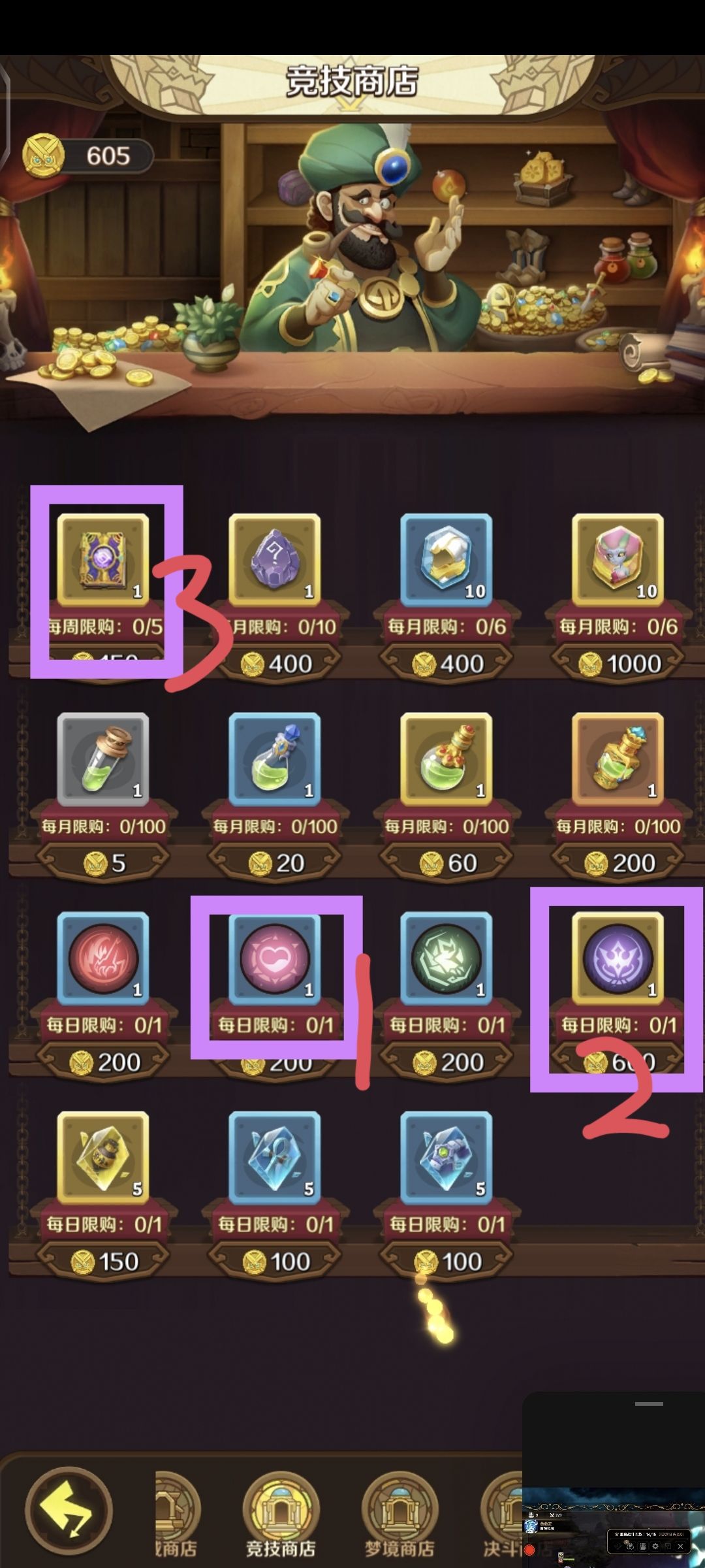 3.竞技场的战斗次数(买1-2次,根据宝箱🔑决定购买次数)