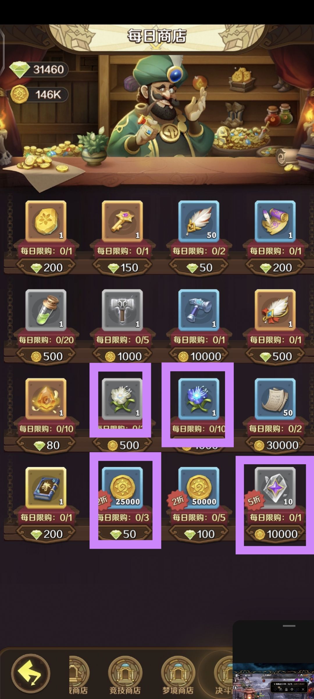 4.每日商店的金币(根据自身情况购买,我一般一天买一百钻)(可不买)