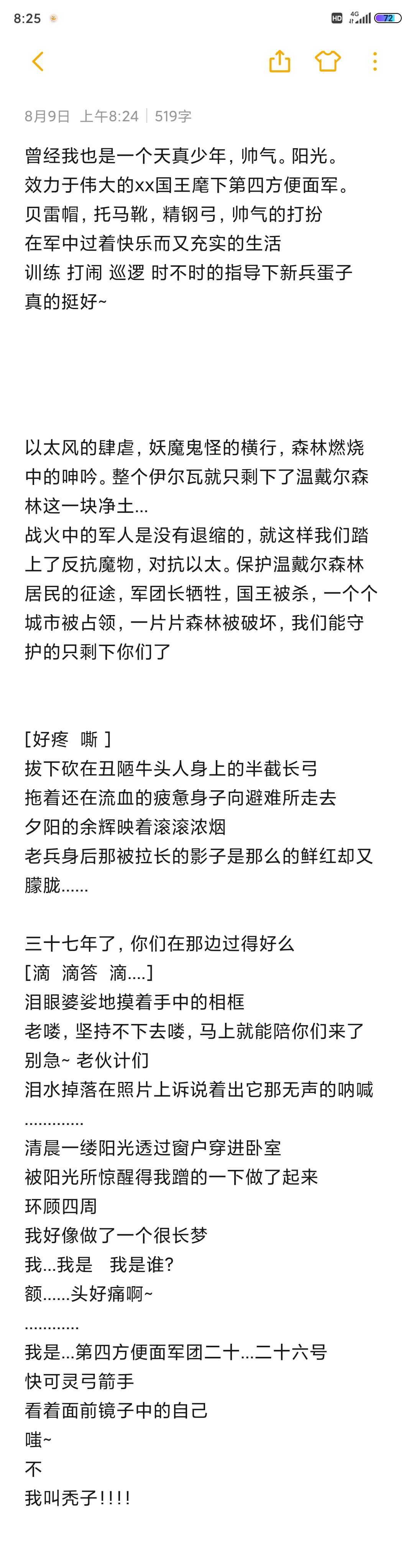 只是粗糙的顺了一两遍。还没做修改,故事有遗漏,文笔不好,大家有啥意见或是建议欢迎提出