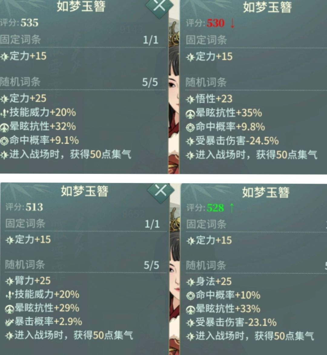 定力主要是辅助和秋风刀铃兰用,洗练命中和技能威力