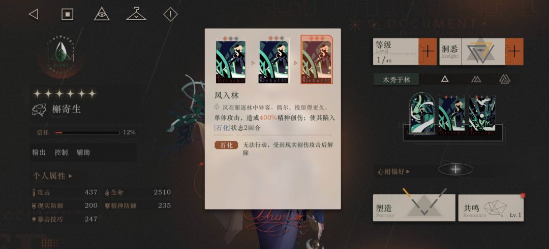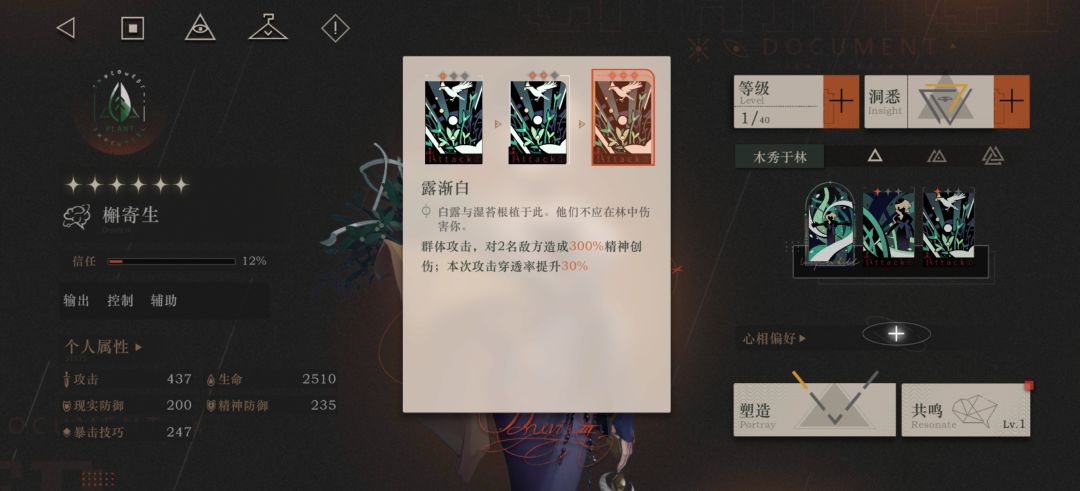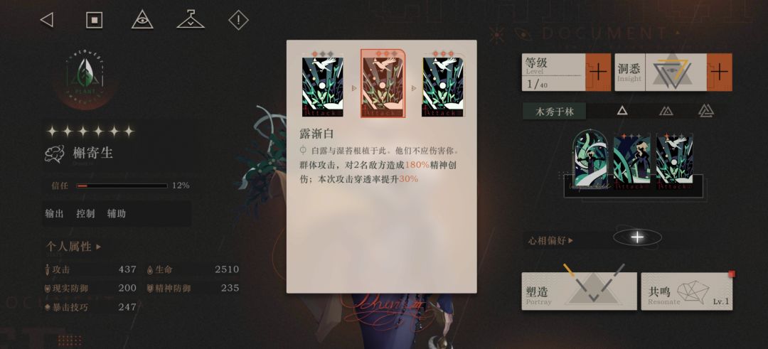 功能性槲寄生首推第二次生命,百分比攻击增益提高面板,直观的提升了伤害,且心相增幅提供的释放群体至终后群体治疗可以缓解队内生存压力,没有抽到好的奶建议走这个定位。