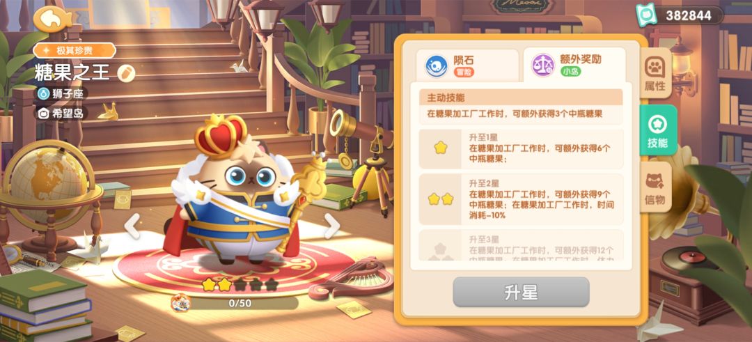 首先罗德里要升两星,可以让糖果工厂时间减百分之10,并且每次生产获得9个中级糖果。非常的重要