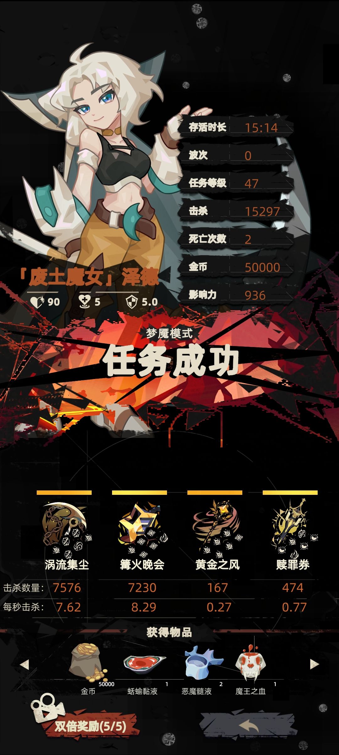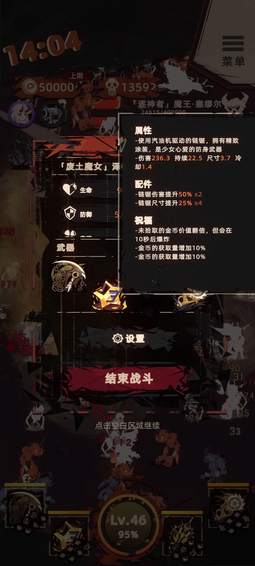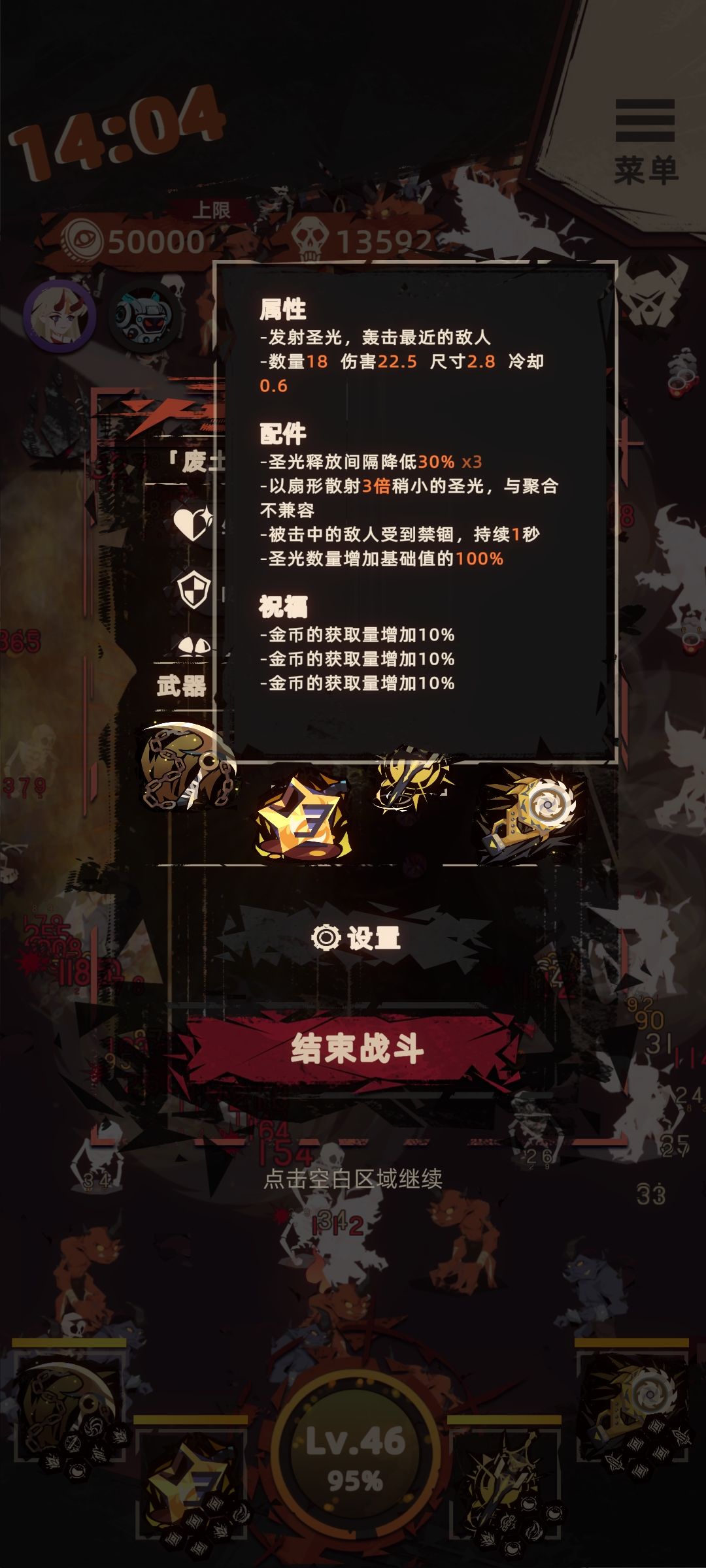 4、祝福:选3个15%金币获取量+8个10%金币获取量+1未拾取金币翻倍,十秒后爆炸(进化了镰刀之后选)(选配件时出现祝福优先选祝福)