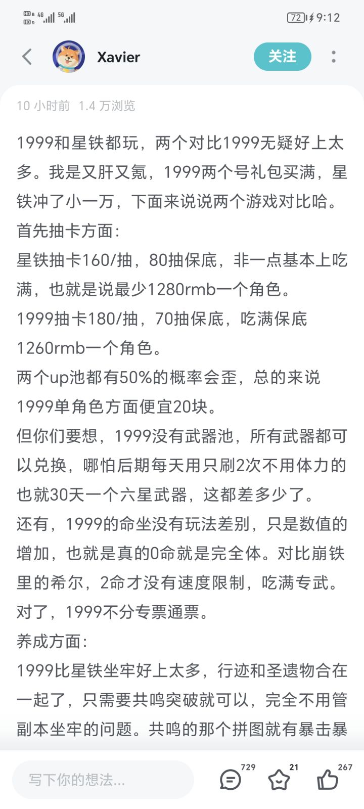 张口就氪一万搞得很有舒服力一样,2+1希尔,0+1景元53级就是万氪了?你说轨子垃圾就说呗,非得装杯自己氪一万搞得站受害者角度一样,不和好的比比谁更扣门谁更骗氪比谁下限更低是吗,看似夸99其实不是害他?你要真充一万玩的难受好歹自身也有个说服力,不懂的还以为99零氪比轨子万氪box还好呢,甚至逆天到算上99主线奖励和人邮箱奖励拼福利,大伙都没人反对?不会真就认可现在福利已经远胜热门非常良心了吧,还是和mhy比?这种带煽动性误导性的帖子在论坛里能有这种热度,明面上好像玩家共情,背后就是论坛运营推波助澜,什么算盘我不好说