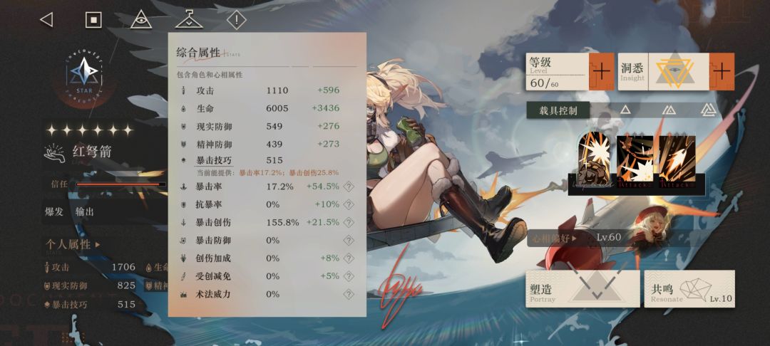 红弩:攻1065 暴击率17.2% 爆伤155.8%