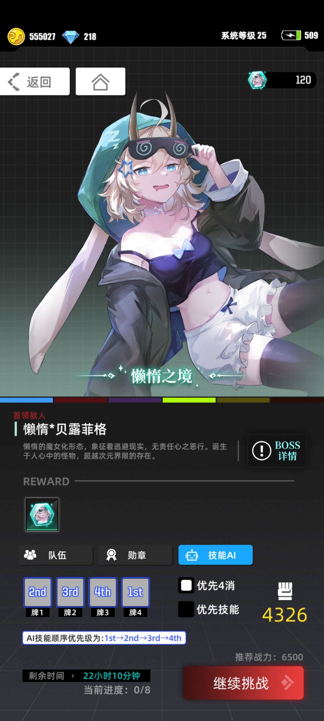 这套阵容打懒惰一般三轮就可以结束战斗 充能足够 有控不怕被连死 止境开了2天赋的话一般不会死
