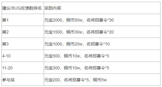 2、官方会对玩家提交的建议/BUG进行筛选,无效建议和已修复BUG将不计入活动统计内